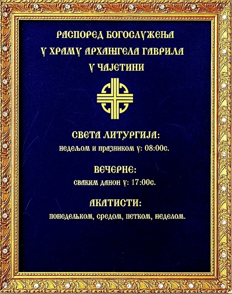Распоред Богослужења у храму Архангела Гаврила у Чајетини: